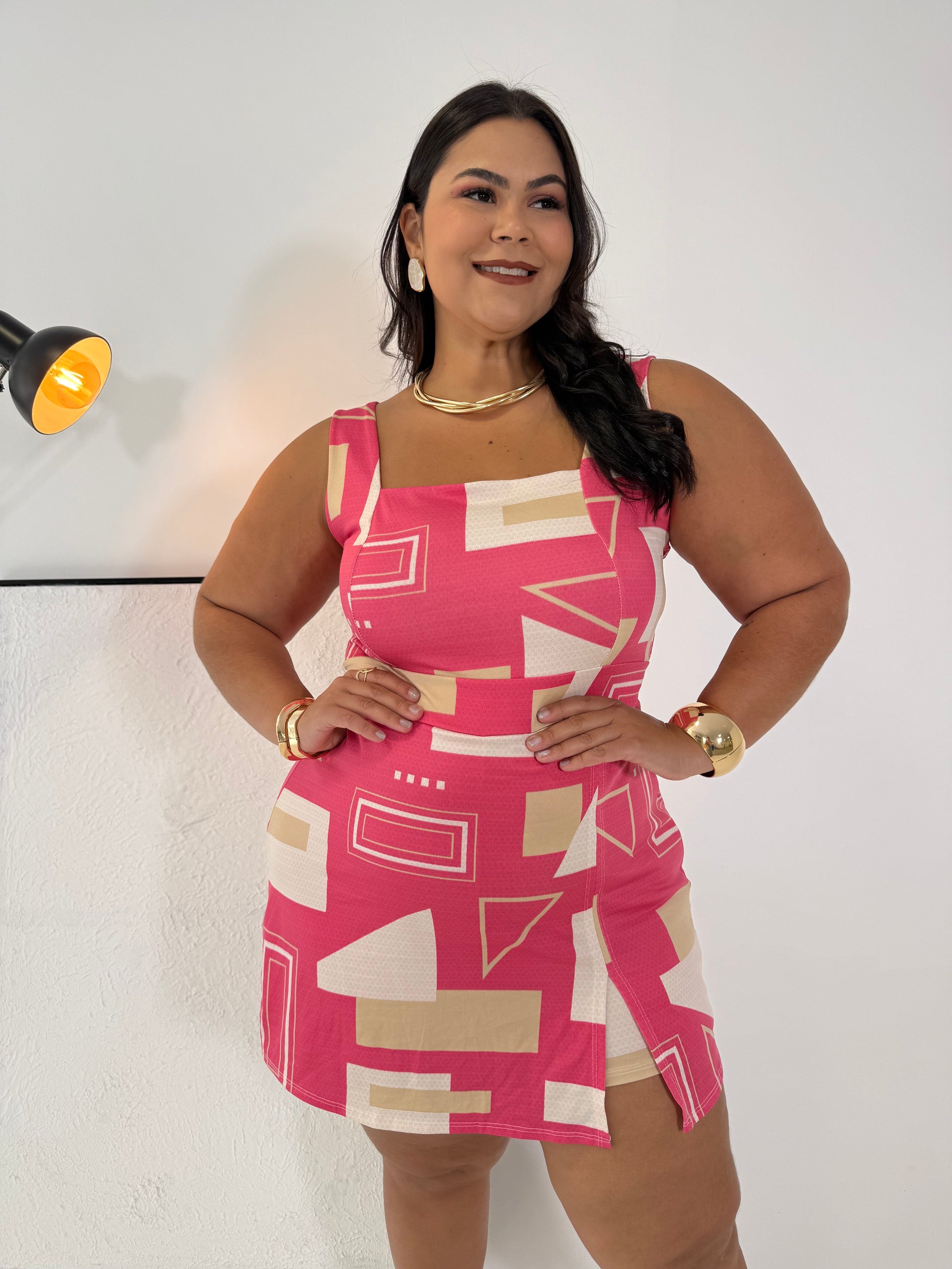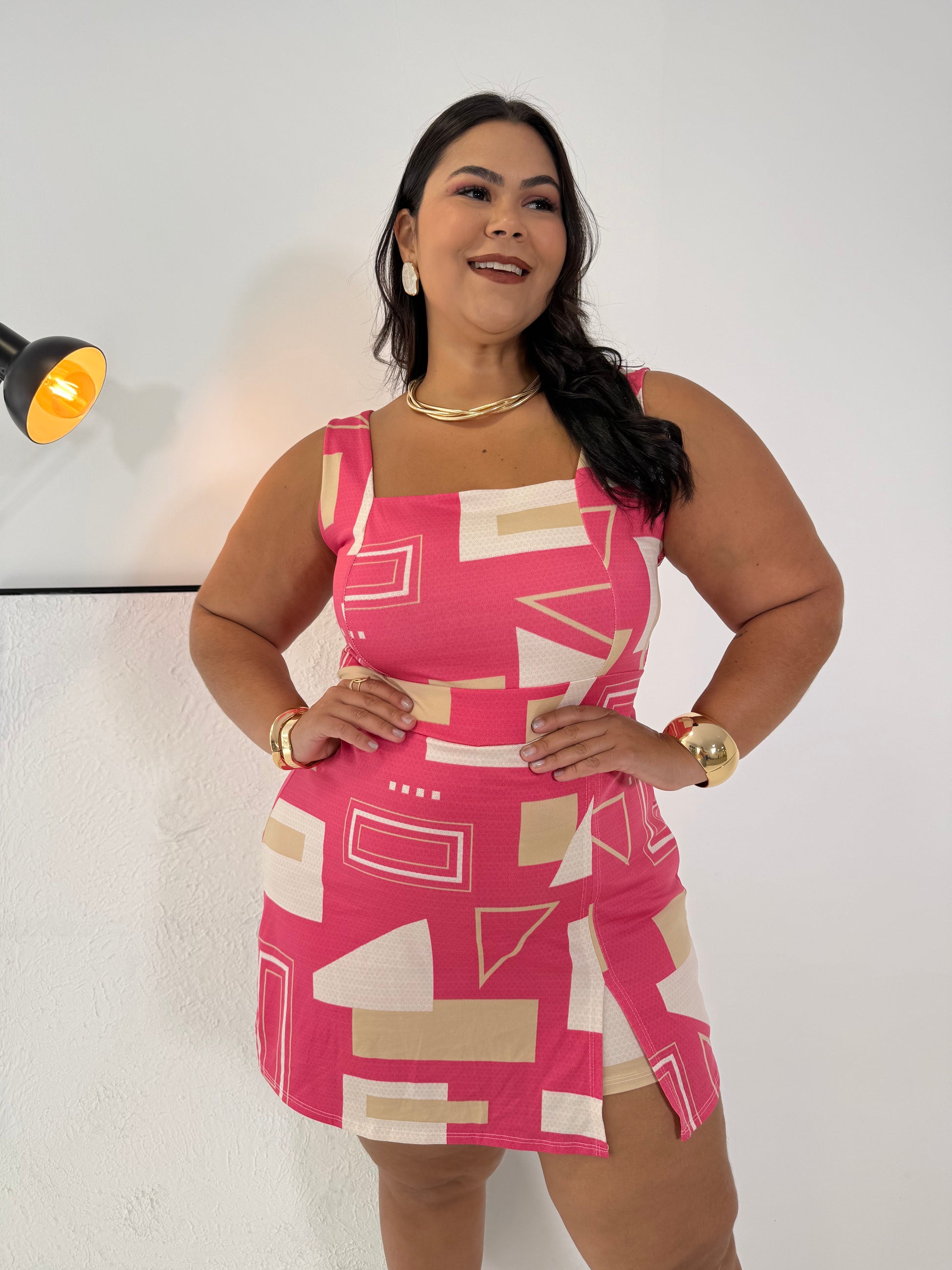 Macaquinho Feminino Alice Rosa - Estilo Geométrico e Conforto em uma Peça Única